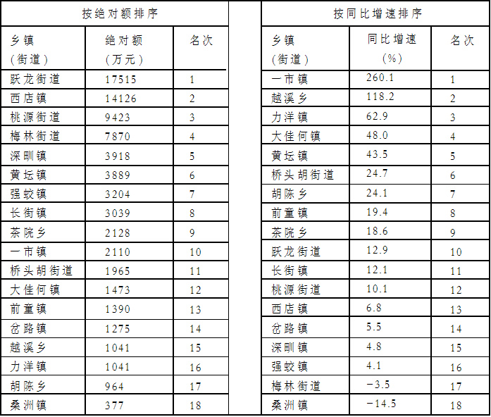 注:西店镇作为卫星城镇,财政体制与其他乡镇不同,作为财政总收入,西店镇还包括土地增值税、耕地占用税、契税等其他税收收入和专项收入、行政事业性收费收入、罚没收入、国有资源有偿使用收入等非税收入,税收总收入14126万元不含上述收入,上述收入占西店财政总收入比例较小(2011年为3.5%),排名影响较小。