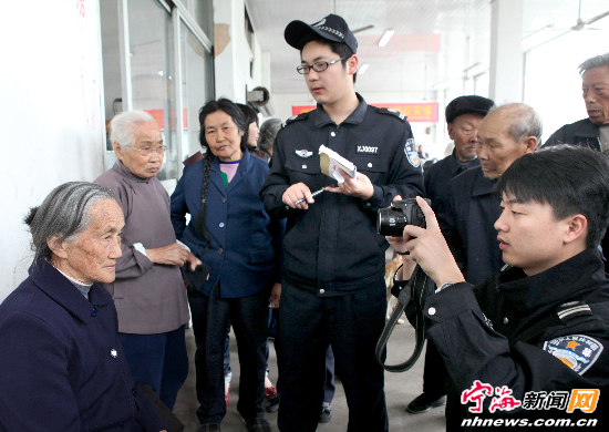 宁海新闻网讯 近日,桃源派出所警务人员正在浦西社区给当地的老年人拍摄制作二代身份证用照片。桃源街道浦西社区有200多名老年人一直没做过二代身份证,给生活带来诸多不便,社区工作人员获悉后,主动联系辖区派出所,让警务人员上门给老人拍照,以满足老年人的实际需求。(惠广亮俞永朝摄)