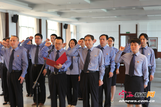 日前,县检察院组织检察官参加集体宣誓活动,全院共17名检察官参加。 (通讯员葛一瑾摄)