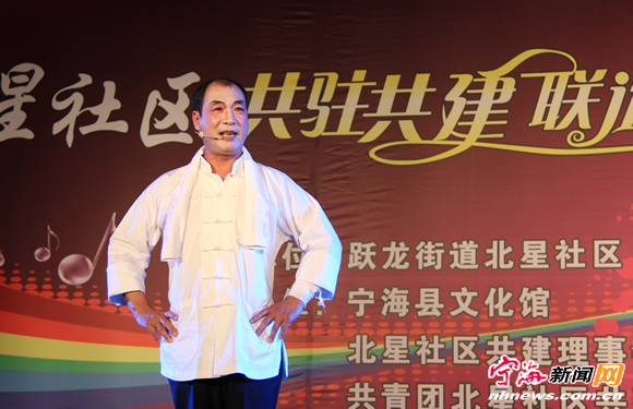 宁海新闻网讯 近日,跃龙街道北星社区在人民电影院举行了以“传播家庭文化 共创幸福人生”为主题的社区共建共创联谊晚会。晚会上还对社区“十佳学习型家庭”和“十佳慈孝家庭”进行表彰颁奖。图为该社区群艺俱乐部成员正在表演精彩的文艺节目。 (惠广亮 葛湛 摄)