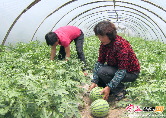 ![]() 宁海新闻网讯 日前,长街镇新五星村的苏才忠夫妇正忙着采摘大棚西瓜。今年因受连续阴雨、低温天气等影响,西瓜上市较往年推迟了近一个月。据了解,今年西瓜批发价格与往年基本持平,保持在每公斤2至4元左右。长街是我县的西瓜种植大镇,种植的西瓜甜度高、口感好,颇受广大消费者的青睐,目前城区市场上销售的西瓜多产自该镇。 (李江林苏敏宣摄) |