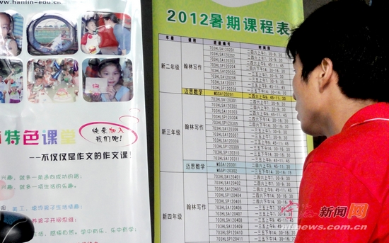 ![]() 宁海新闻网讯 昨日,市民正在城区某暑期培训班的宣传广告前驻足。尽管暑假还没开始,但是,记者看到,缑城市场上各种校外暑期辅导班的宣传广告已经铺天盖地,打响了生源争夺战。有关人士提醒,培训班增多,选择时需要擦亮眼睛。家长在报名前应首先查验该培训点的办学资质,另外培训点的教学口碑也很重要。 (记者 惠广亮 摄) |