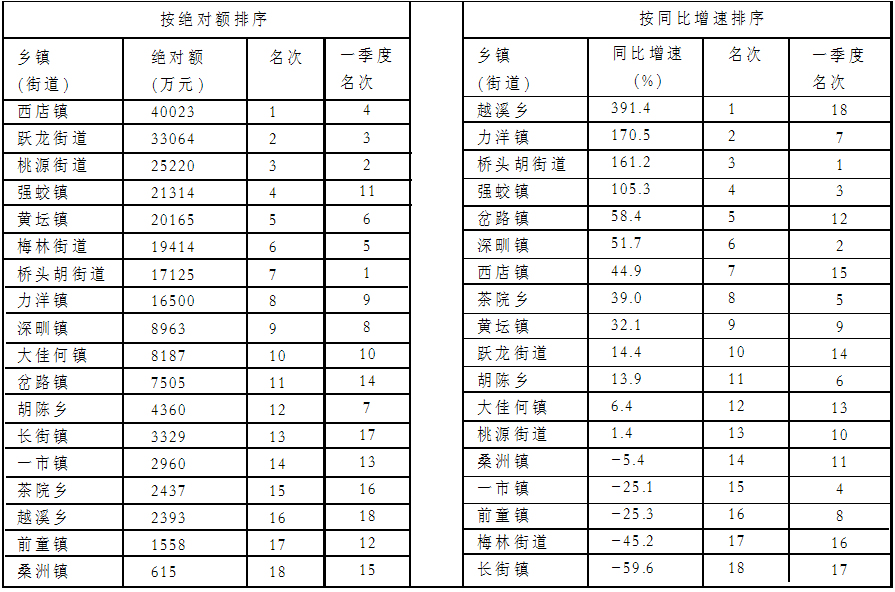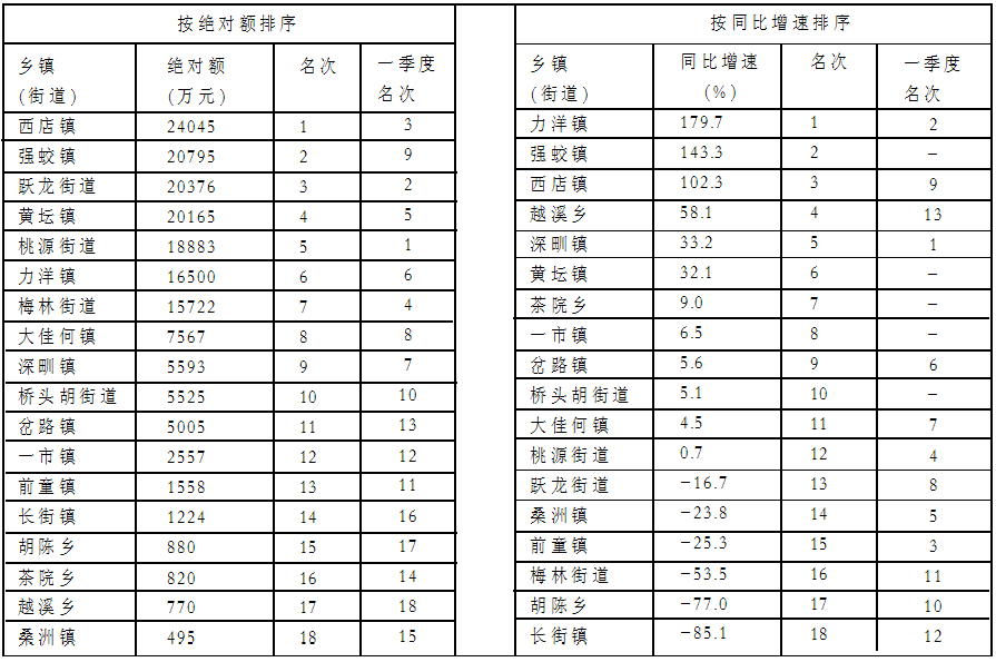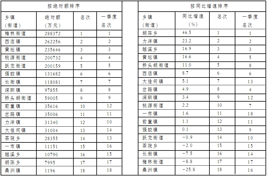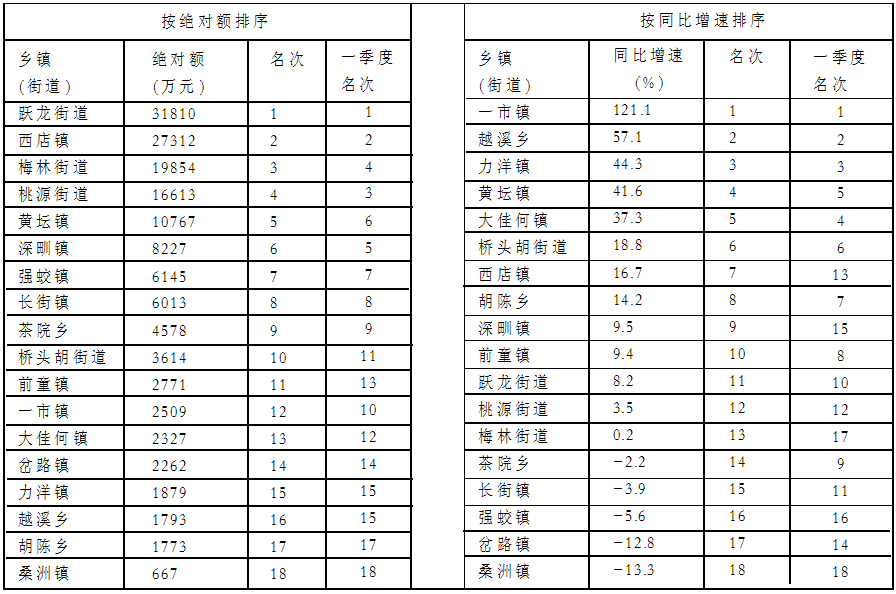 上半年税收总收入排序