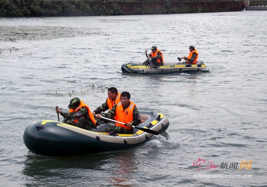 宁海新闻网讯 台风“苏拉”刚走,“海葵”又至。昨日上午,胡陈乡积极组织应急小分队在中堡溪流域进行冲锋舟防汛抢险救灾演练。 (李江林 胡燕红 摄)