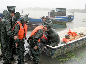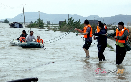 宁海新闻网讯 昨日中午退潮时,胡陈乡一对养殖户夫妻来到车家塘自己承包的塘内,没一会儿,水涨到2米之高,这对夫妻被困在塘内。胡陈乡应急小分队接到求救电话后,紧急出动10余人奔赴现场,经过应急小分队1个多小时努力,终于将夫妻俩解救到岸。 (李江林 胡燕红 摄)