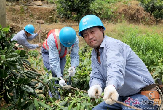 宁海新闻网讯 昨日,胡陈乡电管站的电力工人正在拉正田间倒伏电杆。连日来,为了使灾区的田间地头能够尽早恢复正常供电,帮助广大农户更加有力地开展灾后自救,电力部门增加受灾地区的人员安排,电力工人发扬连续作战、不怕疲劳的精神,奋战在抗灾第一线。 (记者 惠广亮 摄)