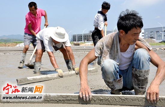 宁海新闻网讯 昨日上午,施工人员正在宁东商务中心工地灌浇临时办公用房和生活用房地面。县重点实事工程之一的宁东商务中心建设工程总投资约4亿元,总建筑面积45000多平方米,集办公、会议接待、展览、休闲娱乐、餐饮等于一体。整个工程预计到2014年上半年可完工。(李江林王芷诺 董新旵摄) |