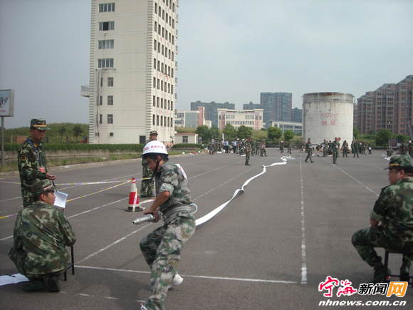 宁海新闻网讯 日前,岔路镇基干民兵专职消防队代表我县参加“2012年度全市专职消防队业务技能比武竞赛暨‘人人参与消防 共创平安和谐’主题消防运动会”,以过硬的技术获得业务比武团体第二名,在手抬机动泵单干线出两支水枪操比赛中勇夺第一名。(通讯员 祝多旭 摄)
