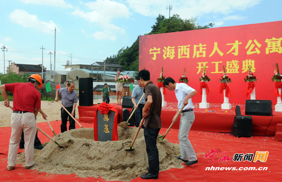 宁海新闻网讯 昨日上午,县重点工程之一的西店镇人才公寓工程开工。该工程位于望海工业园区内,总投资4.6亿元,占地65亩,建筑面积10万平方米,目前开工建造的首期工程358套人才公寓,预计到2014年下半年完工,这将为西店镇人才引进工作奠定基础。 (李江林童瑶摄)