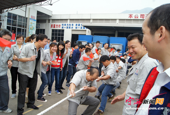 宁海新闻网讯 9月24日,宁波俊均出口包装有限公司举行“迎中秋庆国庆”趣味运动会,项目包括拔河、三人绑腿跑等。通过比赛,进一步丰富了广大员工的文体生活,增强团队精神,提高工作热情,欢欢喜喜迎双节。 (海森传铭摄)