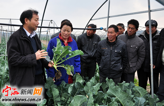 宁海新闻网讯 昨日下午,省农科院蔬菜专家何圣米正在力洋国盛西兰花种植基地为种植大户进行现场指导。受力洋镇农办和力洋成校邀请,汪自强、张金枝等10余位省农科院及浙大宁波科技特派团队的专家、教授来到力洋开展送科技下乡活动,专家们根据菜农与养猪户实际,分别为他们进行分类知识培训和现场技术指导,为该镇40余位蔬菜种植大户和80余位生猪养殖专业户送上了一份“科技大餐”。(李江林李品锋冯全炉摄) |