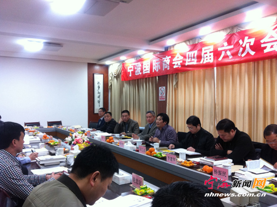 宁海新闻网讯 12月27日下午,宁波国际商会四届六次会长办公会议在宁波如意股份有限公司召开,公司董事长储吉旺主持。会议听取如意公司情况介绍,通过增设常务理事、增补理事的决议,审议通过增设常务理事名单,通过会费收缴标准决议等。(记者陈静珠摄)