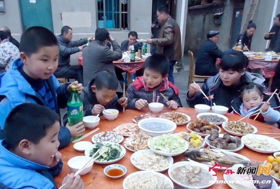 宁海新闻网讯 2月3日是腊月廿三,又称“小年”,跃龙街道松竹社区泰山殿巷的居民欢聚在一起,在楼道里自办年夜饭,呈现出一派浓浓的邻里之情。参加活动的居民积极响应“光盘”行动,少数吃不掉的菜也是各自带回了家,拒绝铺张浪费。 (惠广亮柴海勇摄)