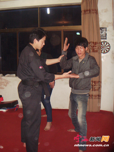 ![]() 图为张鹏(左)正在手把手地带徒习武。 白天,他是一名新入职不久的城管队员,穿着整洁的制服穿梭在繁华的大街小巷里文明执法;夜晚,他化身“总教头林冲”在东方武术健身馆义务授课,座下已有10名固定学员。更特别的是,他的身上还流淌着文艺青年的血,怀揣“电影”梦,于去年10月首次“触电”,拍了一部微电影《勇者无惧》。他,就是宁海“80后”小伙张鹏。 以武会友 出生于1989年的张鹏,1米78的个子,干练的短发,简单的装束,举手投足间,显现出健硕的肌肉线条,可是那略带婴儿肥的脸上却还有几分稚气。别看现在的张鹏结实壮硕,小时候身体却一直很弱。初中毕业后,他开始步上习武之路。“习武,最直接的好处就是强健体魄。”张鹏笑着说,“在当今社会,身体可是革命的本钱啊!”就这样,他八年如一日开始了不间断的练武生涯。 2007年3月获得河南省平顶山青少年组70公斤级散打冠军,2009年6月获得湖南省娄底市75公斤级散打冠军……年少时这段四方征战的经历,不仅让他武艺大增,更让他眼界大开。之后,在2012年7月,他集百家之长,创立了自己的武术健身馆——东方武术健身馆。 张鹏的武术健身馆不大,只有60平方米左右。但麻雀虽小,五脏俱全,各种力量器械和各色兵器都齐备。张鹏说,他开馆的初衷是为了精武传艺。在他看来,一个人练武,那是敝帚自珍,众人练武,则是合力之为。于是,每个周一到周五18:30到20:30,他都会准时出现在健身馆里,义务教授学员们各种格斗技巧,擒拿、柔道、摔跤、泰拳、跆拳道、空手道、巴西柔术、自由搏击等都有涉猎,他沉浸在武术世界里,收获了一群志同道合的伙伴。 |