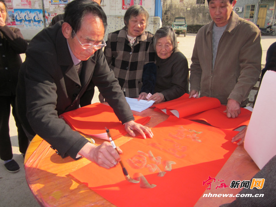 宁海新闻网讯 近日,泉水社区举行了“金蛇狂舞舞新春墨飘泉水五福聚”写对联、送祝福活动。活动现场热闹非凡,书法老师们手不停挥,笔走龙蛇,洋洋洒洒,一会儿就送出了200多副对联,居民们个个脸上带着满意的笑容“满载祝福”而归。