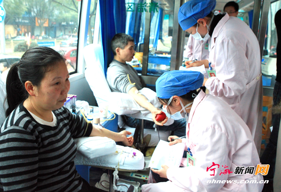 宁海新闻网讯 今年春节,岔路大路下的胡华锋夫妇再次双双走上献血车,以献爱心的方式欢度新春佳节。 (记者李江林摄)