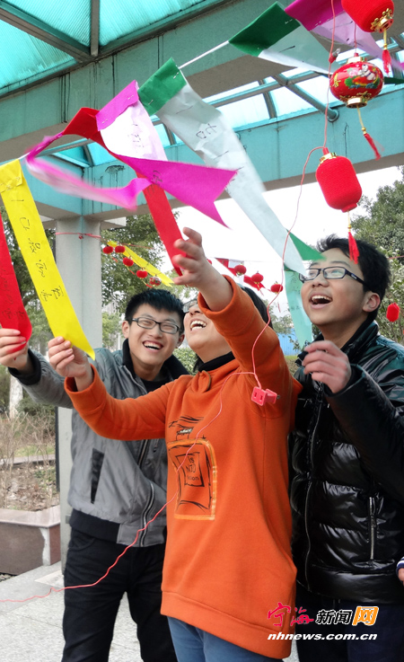 宁海新闻网讯 昨日下午,东海社区在一休公园举行“金蛇起舞闹元宵和谐邻里一家亲”猜灯谜活动。社区工作人员与学生志愿者一同挑选的200余条集知识性、趣味性于一体的谜语引起了广大居民浓厚的兴趣,大家你一条我一条,争先恐后地竞猜抢答,欢欢喜喜迎元宵。 (李江林葛盛楠摄)