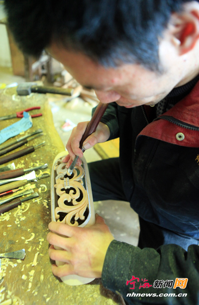 五 清刀讲究以刀代笔,刀刀见力。每一刀下去都不容更改,每一刀饱含的技艺都决定着这件作品的成功与否,难度可想而知。而这也是这门古老技艺不容易传承的重要原因之一。 除了雕刻,清刀还有一系列复杂的工艺程序。雕刻匠不仅要精通雕刻,还要兼备绘画、设计等技能,一件清刀雕刻作品从木料到最后呈现出的成熟作品,需要经过备料、设计、选材、拼接、打粗坯等十多道工序。和其他的民间手工艺传承一样,一千多年来,清刀技艺的传承也是采用“口传身教,心手相应”的传统方式,即以师徒关系传承或因父子关系传承,且“传男不传女”。这种传统的传承方式也很大地局限了这项技艺的推广和普及。 ![]() 年轻的清刀雕刻师。 改革开放以后,清刀技艺的传承有了一些变化,除了传统的方式外,在私营、个体企业里也进行了一些家族式的传承,并涌现出了一批优秀的女性艺人。但尽管如此,清刀这门古老技艺还是面临着失传的危险。从去年开始,县一职高开办了一个清刀木雕传承班,共招收了39个学生。清刀传承人黄才良说,清刀传承班招收学生并不容易,有基础没兴趣的,人家不愿意来,有兴趣没基础的,又不能招,因此,这39人也是挑了又挑的。现在,大家都是独生子女,都希望孩子能有一份好的工作。对于雕刻这门手艺,首先就缺乏社会认同感,很多家长认为孩子念那么长时间书,最后当个雕刻匠,心里转不过这个弯。另外,雕刻这个行当也存在一定的偶然性,也并不是你去学了,最后就一定能在这个行里成才。因此,尽管开了这么一个班,但它并没有从根本上解决清刀技艺的传承问题。 和当初比起来,现在的清刀雕刻匠的收入已经不可同日而语了。现在从事清刀雕刻的师傅,普通的350元一天,好一点的500元一天。而且,无论科技怎么发展,像清刀这种传统技艺永远也不会被机器所替代,因为这种技艺包含着人的智慧和情感。 说到清刀的传承,黄才良想起了一个孩子。那个孩子很喜欢清刀雕刻,做出来的人物效果很好。他很看好他,最后都决定自己亲手带他。可这时,他的父母却不同意他学雕刻,而让他去念大学。 说起这个孩子时,黄才良的脸上便情不自禁地流露出了一种深深的惋惜。 |