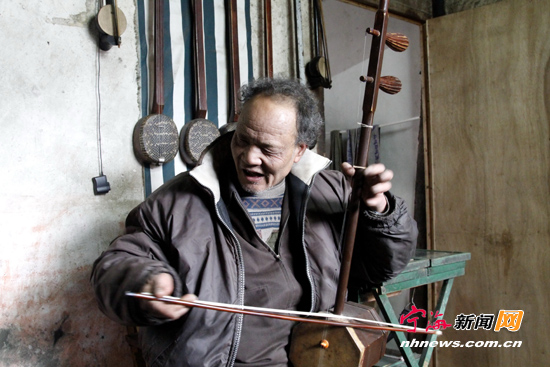 贝多芬患耳聋谱出《命运交响曲》,阿炳双目失明演奏《二泉映月》,他们的故事人们早已耳熟能详。在我县桑洲镇麻岙陈家村,也有一位名叫陈振台的老人,他自小双目失明,却吹拉弹唱样样行,还能自己制作乐器。近日,笔者走进陈振台家,亲眼见证了音乐的神奇魅力。 ![]() 身后的乐器都是陈振台亲手制作的 桑洲镇麻岙陈家村是远近闻名的历史文化古村,这里特有的“三退九明堂”古建筑群吸引了各地的摄影爱好者和慕名前来的游客。在其中一座古色古香的四合院里,住着一位盲人乐师,村里的几位民乐爱好者常常聚集到这里和他切磋演奏技艺,悠远缠绵的乐曲为这座古村平添了几分独特的魅力。盲人乐师名叫陈振台,今年63岁,他不但会弹奏各种乐器,还会制作各种乐器,看不见光明的他,在黑暗中创造出了一个个神话般的生命奇迹。 陈振台的童年颇为凄惨。在缺医少药的年代,一场突如其来的疾病导致他因高烧而双目失明。那年,他才4岁。失去光明,虽然给陈振台的童年生活带来无比的痛苦,但他却在黑暗中摸索着学会了生活上的自理、练就了心理上的自强。为了今后的出路,13岁那年,家人送他去跟人学算命。但陈振台当年并没有把算命作为自己唯一的生活依靠,青年时代,他也和常人一样,参加生产队的劳动,做些力所能及的事。车水、扇蛎灰(用牡蛎壳烧制石灰)是他最拿手的工作,也能靠工分养活自己。当时,麻岙一带的年轻男子都要学习泥水、木工、油漆等手艺活谋生。陈振台年轻时也按捺不住学手艺的冲动,他设法找来木工工具,凭着超常的意志,用双手摸索着熟悉锯、凿、刨、锉等各种工具的使用技巧和木工制作工艺。虽然他没能像其他年轻人那样学成手艺去谋生,但也能在家制作些凳子、椅子等。在他家,笔者看到,各种生活、生产小工具做得像模像样,他年轻时制作的羹橱,至今仍在使用。 ![]() 陈振台在专注地拉着二胡 20岁那年,他迷上了二胡。没有老师指导,他就边收听广播、收音机播放的音乐,边模仿练习。后来又买了台卡式录音机,对着录音机反复进行比较练习。功夫不负有心人,陈振台不但学会了拉二胡,还学会了演奏三弦、京胡、越胡等各种民族乐器。几年后,他就不再满足于乐器的演奏,熟悉乐器的构造原理后,他开始自己做乐器。陈振台至今还记得,当年他制作的第一件乐器是一把三弦,花了半个月时间。后来,二胡、京胡、越胡等各种乐器都在陈振台手中一件件诞生。虽然学过木工的经历为他制作乐器提供了便利,但乐器的制作难度要比做木工大得多,陈振台用手摸索比划着完成每一道工序,且能做到工艺精良。为了给笔者演示二胡制作工序,陈振台翻出了他平时使用的工具,就在摸索着找工具时,他的手被划破,鲜血直流,可见平时制作的艰难。笔者在采访时看到,陈振台家的墙壁上挂满了各种乐器。这些乐器除了自娱自乐,也有人上门求购。“不久前还有个宁波客人远道而来,买走一把三弦呢!”陈振台自豪地说。 ![]() 陈振台做起木工活轻车熟路 音乐为陈振台的生活增添了乐趣,邻居老少都爱到他的院子里听他弹奏,有时,还会有人和着唱几段。后来,村里的一些乐器爱好者也常来陈大伯家里切磋技艺,陈振台家里经常是高朋满座。 收获了快乐,也收获了幸福,34岁那年,陈振台和附近里山季村的季春莲结为夫妇,并育有一子。不寻常的人生,使陈振台夫妇对儿子寄予了厚望,他们望子成龙,悉心培养。儿子也不负父母的重望,刻苦学习,如今已大学毕业,有了自己的家庭和事业。 (通讯员周衍平苏礼巧) |