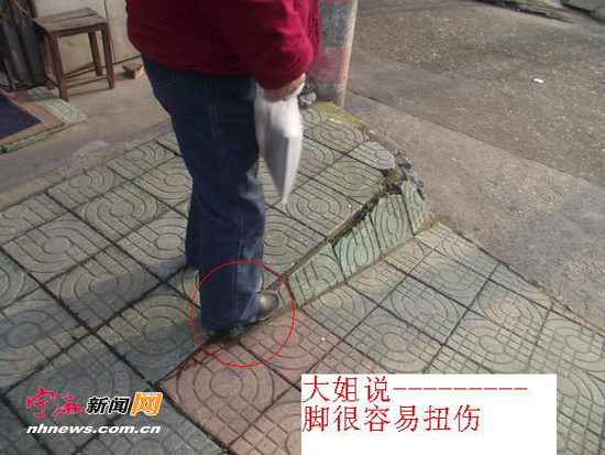 千万小心哦!北大街20弄等弄口的人行道……