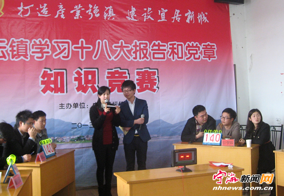 宁海新闻网讯 前日,黄坛镇举办以“学习十八大精神,创先争优展风采”为主题的党的十八大精神和党章知识竞赛。来自该镇机关、企业、农村、妇联等单位人员组成的6个代表队进行了总决赛,赛题主要为十八大报告精神、党章、党史知识以及我县发展情况等相关内容,主题突出。 (惠广亮 章亚丽 摄)