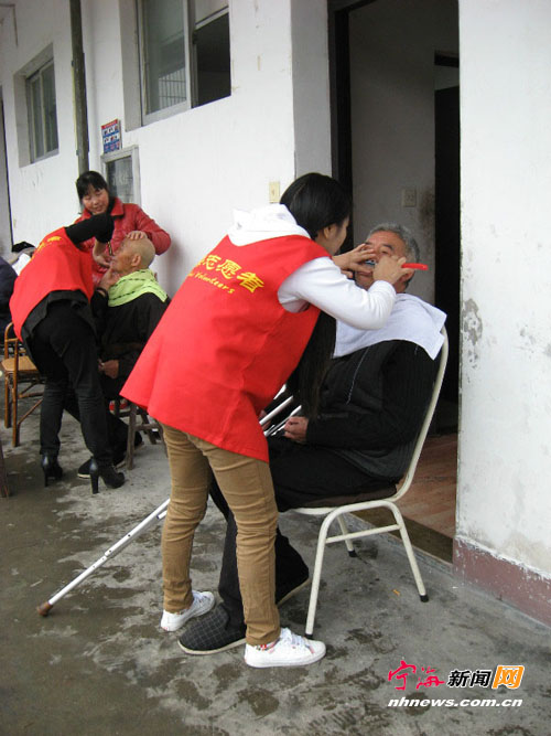 近日,心连心志愿者来到岔路敬老院开展爱心活动,就像对待自己的亲人一样,为老人们洗头、洗脸、剪指甲、量血压,请看这一幕幕温馨的画面…… (网友沉默似金摄)