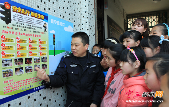 宁海新闻网讯 为加强青少年交通安全意识,减少非机动车及中小学生交通事故的发生,冠庄社区日前联合县交警大队在回浦小学开展交通安全宣传活动。在场民警利用我县近三年来非机动车交通事故发生的案例画报对学生进行教育。图为学生们正在认真听民警分析案情。 (李江林吴妲桦摄)