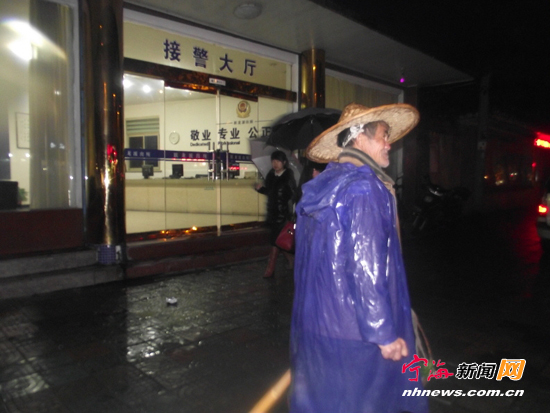 两位警察把老人的篮子和扁担放好后,扶老人上车。