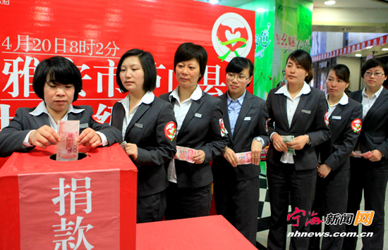 宁海新闻网讯 雅安地震牵动着宁海人民的心,全县许多机关部门、企事业单位和大批爱心人士纷纷捐款捐物,以实际行动帮助灾区群众渡过难关,重建美好家园。 ![]() 前日上午,太平洋百货人民店与国购店积极组织广大员工为四川雅安地震灾区开展献爱心捐款活动,第一次共计捐款4万余元。据了解,太平洋百货集团旗下的门店还承诺,将每天营业额的百分之二用于捐献资金,为灾区群众早日重建家园出份力。 (李江林孔巧燕摄) ![]() 昨日上午,县住建系统工作人员正在为雅安地震灾区捐款,募捐的10万元人民币将通过县慈善总会汇向灾区。 (李江林杨谋幸邵映菡摄) |