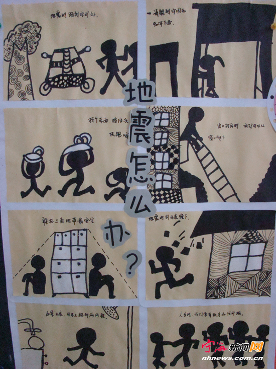 | 绘制逃生图示 背诵“防震自救儿歌” |