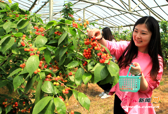 宁海新闻网讯 昨日上午,来自宁波的几位市民正在梅林街道梅大樱桃园试摘樱桃。梅大樱桃园是市科协结对扶贫项目之一,总面积达70余亩,集观光休闲、自由采摘为一体,目前,樱桃已成批成熟可采摘。 (李江林曹晔摄)