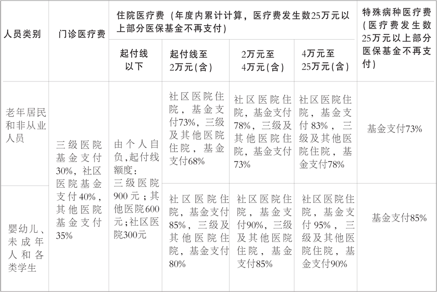 调整后,城镇居民基本医疗保险统筹基金支付住院医疗和特殊病种治疗的最高支付限额分别由20万元提高到25万元;门诊定点医疗机构由原县内定点医疗机构扩大到宁波大市范围内定点医疗机构,确定三级医疗机构基金支付比例为30%,同时按规定办理转外就医发生的门诊医疗费也纳入门诊报销范围;老年居民和非从业人员特殊病种治疗项目医疗费的统筹基金支付比例分别提高3个百分点,调整后达到73%。在调整部分人员住院医疗待遇方面,将老年居民、非从业人员住院的基金支付比例分别上调3个百分点,即:老年居民和非从业人员住院治疗发生的医疗费按年度累计计算,医疗费在起付标准以上至2万元(含)以下的,基金支付68%,个人承担32%;2万元以上4万元(含)以下的,基金支付73%,个人承担27%;4万元以上25万元(含)以下的,基金支付78%,个人承担22%。其中在乡镇(社区)卫生服务机构发生的,基金支付比例在上述基础上分别再上调5个百分点。