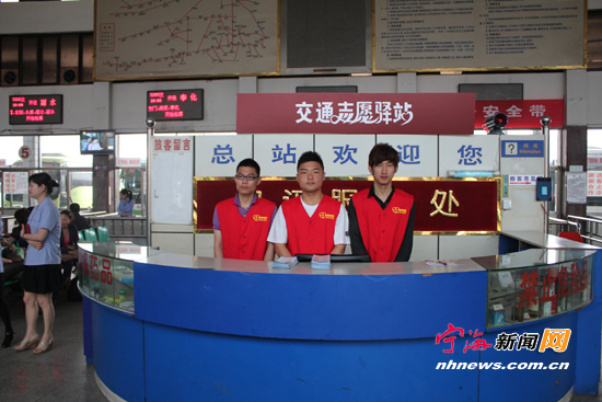 近日,宁海县交通志愿驿站在客运总站成立。据了解,该驿站由县交通局、团县委合作成立,主要为车站往来旅客提供乘车咨询引导、饮水服务、手机充电、天气播报、失物招领,以及提供公交、旅游线路咨询等志愿服务,用奉献、友爱、互助、进步的精神面貌,迎接第十一届中国徐霞客开游节。(章莉 杨涛摄)