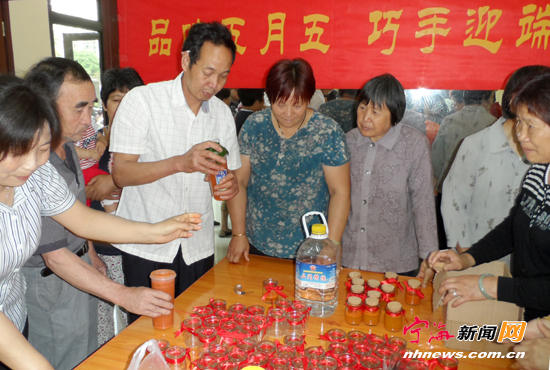 ![]() 端午佳节是中华民族古老的传统节日之一,昨日,桃源街道兴海社区举行主题为“品味五月五,巧手迎端午”活动,制作雄黄酒、缝制香囊、编织长命五彩绳等,将这些传统习俗一一再现。图为居民正在动手调制雄黄酒。(姚亮陈露摄)