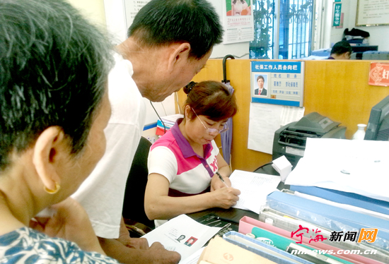 宁海新闻网讯 日前,车河社区的居民正在社区办理2013年城镇居民基本医疗保险参保手续。据了解,2013年城镇居民基本医疗保险与往年不同,将与宁波市医保一卡通接轨,居民可凭医保一卡通在全市医保指定医院看病就医。 (李江林陈玲摄)