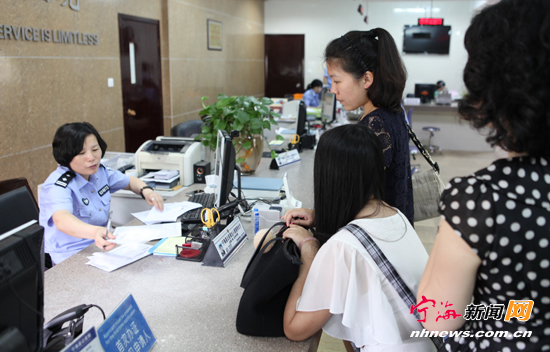 宁海新闻网讯 6月25日,县公安局出入境接待大厅里,市民正在申请办理赴台湾个人旅游证件。随着暑假即将来临,连日来,前来办理出入境证件的市民明显增多,计划在暑假里赴港澳台或出国旅游和准备出国留学的学生都在这期间加紧办理相关证件,许多都是家长与孩子一起来办理的。 (记者惠广亮摄)