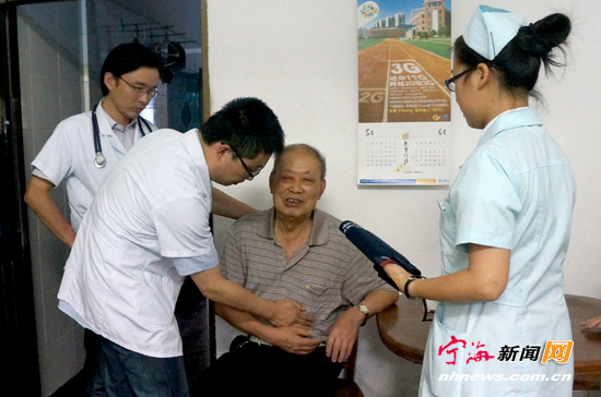 宁海新闻网讯 在建党92周年之际,跃龙街道北星社区对辖区内高龄行动不便的老党员开展关爱活动。年轻的党员医生为他们上门进行身体检查,并针对各自的身体状况,提出锻炼、用药等方面的指导建议与方法,祝愿他们健康长寿。 (姚亮郑洁摄)