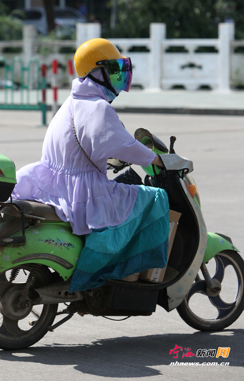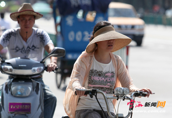 连日来,缑城连续晴热高温,市民出行纷纷采取各种防晒措施,躲避烈日。这是近日记者在街头拍到的一组画面。 (记者惠广亮摄)