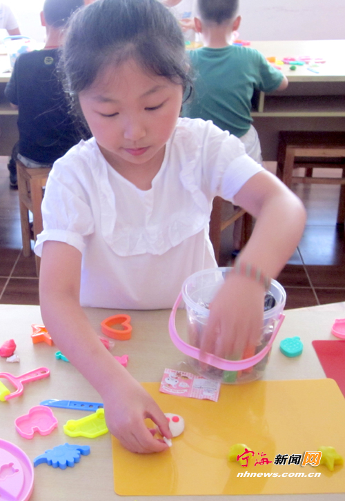 宁海新闻网讯 连日来,桃源街道华庭社区活动室里孩子们的欢笑声不断,原来这里正在开展“多彩童年创意无限”青少年橡皮泥DIY大赛。颜色亮丽的小汽车、活灵活现的小动物,品种繁多的蔬菜水果……一件件新颖别致的橡皮泥作品,充分展示了孩子们的艺术才能。 (姚亮陈浩良摄)