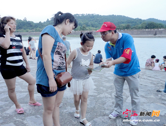 宁海新闻网讯 炎炎夏日,前往南门大溪游泳的市民尤其是外来务工人员子女越来越多,存在较严重的安全隐患。连日来,跃龙街道滨溪社区组织党员、志愿者开展“巡护南门大溪、保护生命安全”活动。他们在溪边,耐心劝说市民不要贪一时凉爽、快意,下水野泳,以防止事故的发生。(惠广亮叶海峰摄)