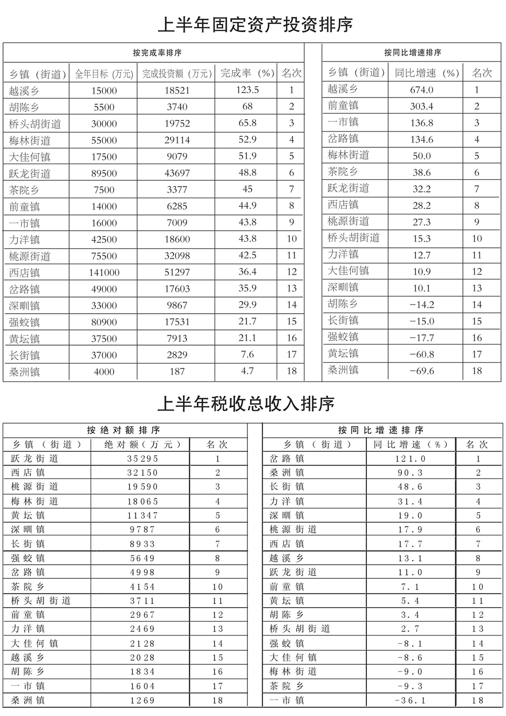 全县2013年上半年“三个年”活动推进情况排序