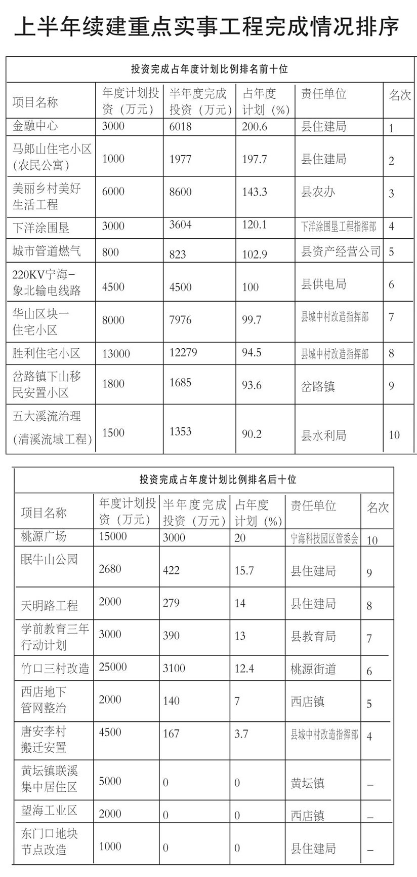 全县2013年上半年“三个年”活动推进情况排序