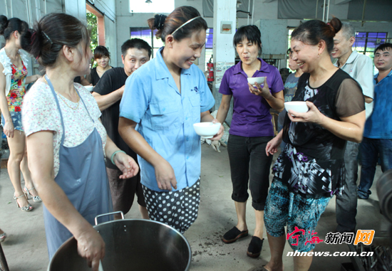 宁海新闻网讯 昨日下午,宁波步来特电器有限公司食堂工作人员将冰红茶、西瓜、绿豆汤等消暑食品用推车送到锻压车间,让一线的工人们解渴降温消暑。为保确广大员工在高温天气下安全生产,该公司每天下午安排人员向一线工人送上消暑食品,为炎热的车间送去一份清凉,为广大员工送去一份关爱。(李江林华立峰摄)