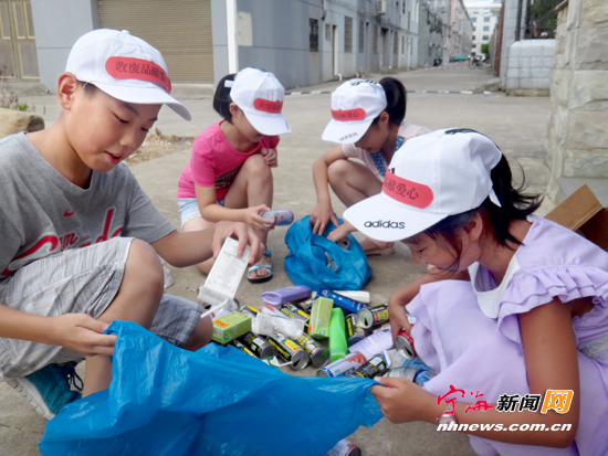 宁海新闻网讯 暑假里,桃源街道华庭社区组织青少年开展“收废品献爱心”公益活动。孩子们带着环保袋,挨家挨户“搜寻”废旧物品,并用废品换钱买了防暑降温食品,送给辖区里的孤寡老人。图为小伙伴们正在收集废品。 (惠广亮陈浩良摄)