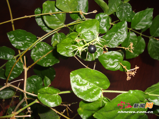 宁海新闻网讯 近日,市民叶小姐报料,说办公室里的一盆茉莉花结出一颗果实,如青豆般大小,紫黑色,看上去晶莹发亮,犹如一颗精美的黑珍珠。其实这是茉莉花结果的现象,比较罕见。因为茉莉花的花期短,一般一天左右就会凋谢干枯,实现顺利授粉的情况不多。(记者陈丹萍摄)