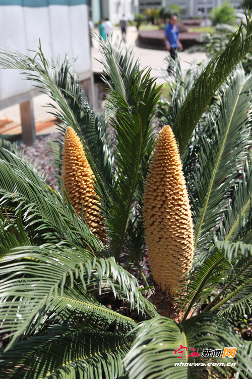 ![]() 宁海新闻网讯 铁树开花现在已经不是稀罕事,然而一株铁树同时开出两朵花,实属罕见。近日,记者在宁海科技园区宁波联合华发五金机械有限公司的厂区里,看到这株开着双生花的铁树。据该公司的人介绍,这株铁树移来种下才2年左右,今年一下子同时开出黄灿灿的两朵花,高约60多厘米,直径达十几厘米。(记者惠广亮摄) |