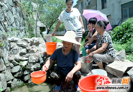宁海新闻网讯 昨日下午,深甽镇溪边村的村民们正在排队舀水。连续晴热高温天气,使我县干旱情况进一步加剧。据了解,目前全县107个村的6.8万人饮用水受到严重影响,其中2.96万人出现了不同程度的困难,1.3万人已经靠送水生活。为进一步做好抗旱自救工作,我县各地群众纷纷投入到挖水渠、截水流、找水源等各种生产和生活自救之中。(李江林赵士超摄)