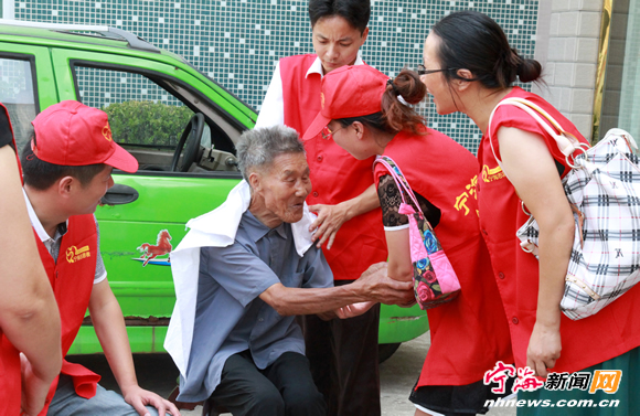 宁海新闻网讯 近日,志愿者来到力洋镇田交朱村,看望慰问年近9旬、参加过抗美援朝战争的王必书老人。连日来,团县委、县志愿者协会组织志愿者开展慰问老战士活动,分头走访慰问了64位参加过抗日、抗美援朝战争以及建国前入伍的老战士,倾听老人们冒着硝烟战火保家卫国的历史。(惠广亮 林琳 摄)
