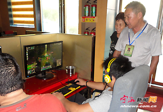 宁海新闻网讯 昨日,跃龙街道滨溪社区网吧监督员正在网吧内巡检。为营造良好的社会文化环境,暑假里,该社区组织网吧监督员,对辖区内网吧开展不定期监督检查。(姚亮叶海峰摄)