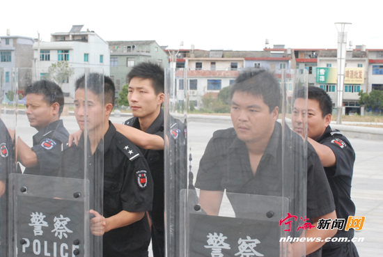宁海新闻网讯 昨日上午,县公安局巡特警大队的32名防暴队员正在国际会展中心广场开展特警战术训练。为进一步提高巡特警队员的防暴处突应急能力,以更好地维护我县经济发展和社会稳定,自8月12日开始,县公安局巡特警大队的全体队员将参加为期三个月的特警战术轮训。(李江林周国亮摄)